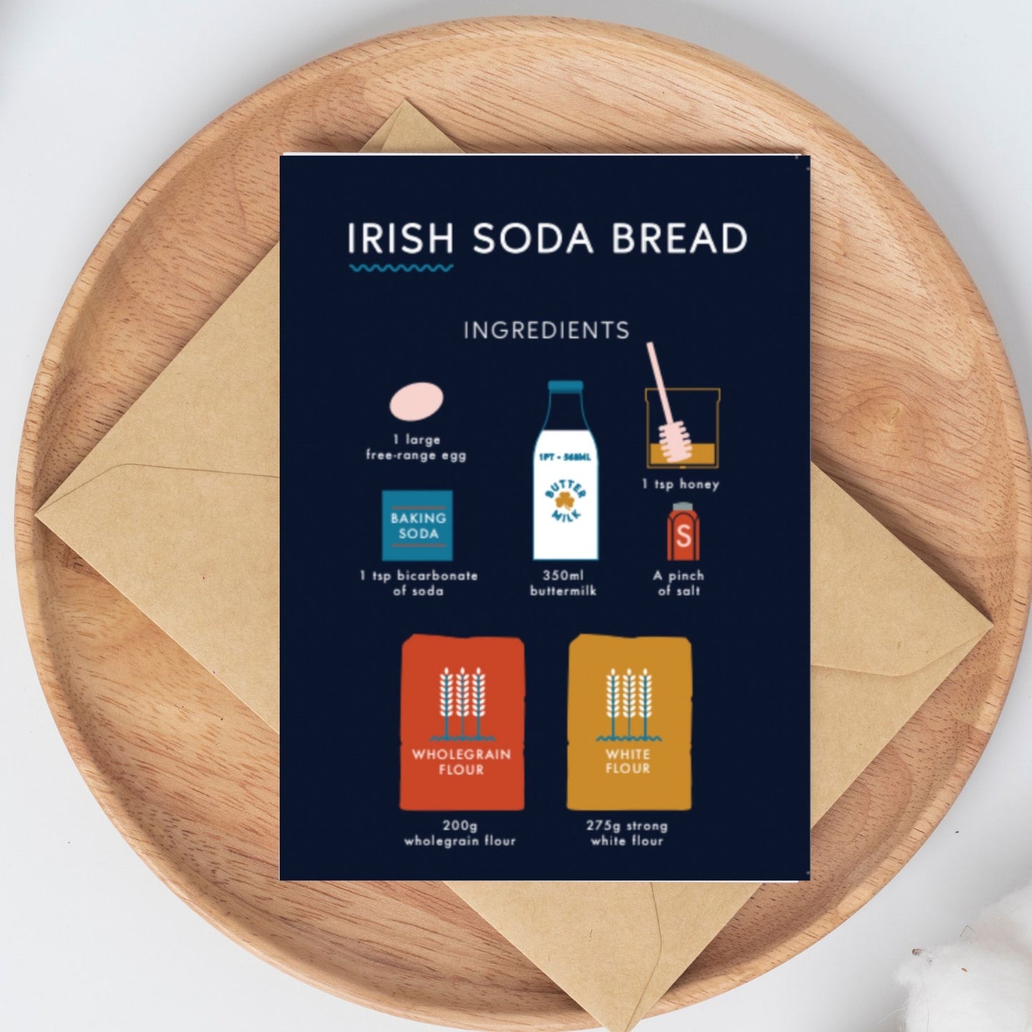 Indulge in the Irish food classic of Soda Bread with our charming Irish Recipe Greeting Cards. Designed by Laura Buchanan, these cards feature beloved Irish recipes, capturing the essence of your trip to Ireland for years to come. Crafted on 100% recycled card stock, each A5 card is blank for your personal message.