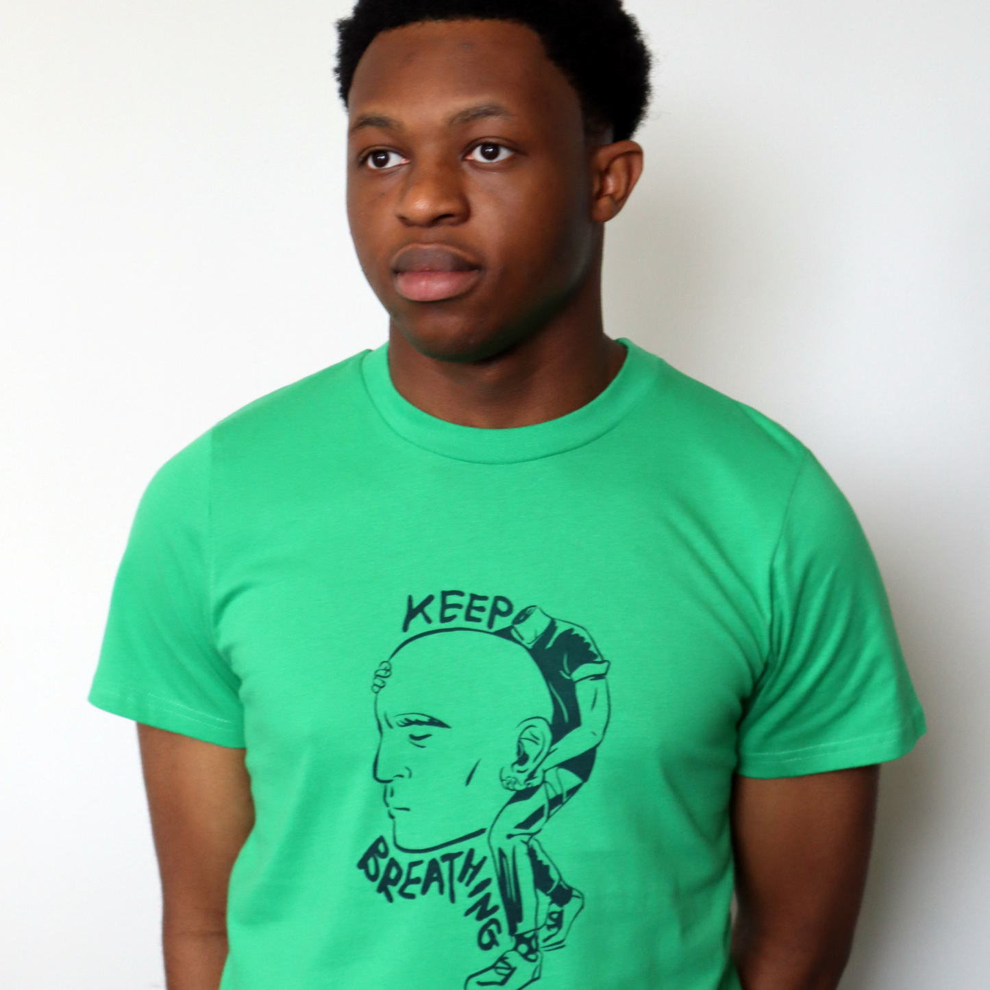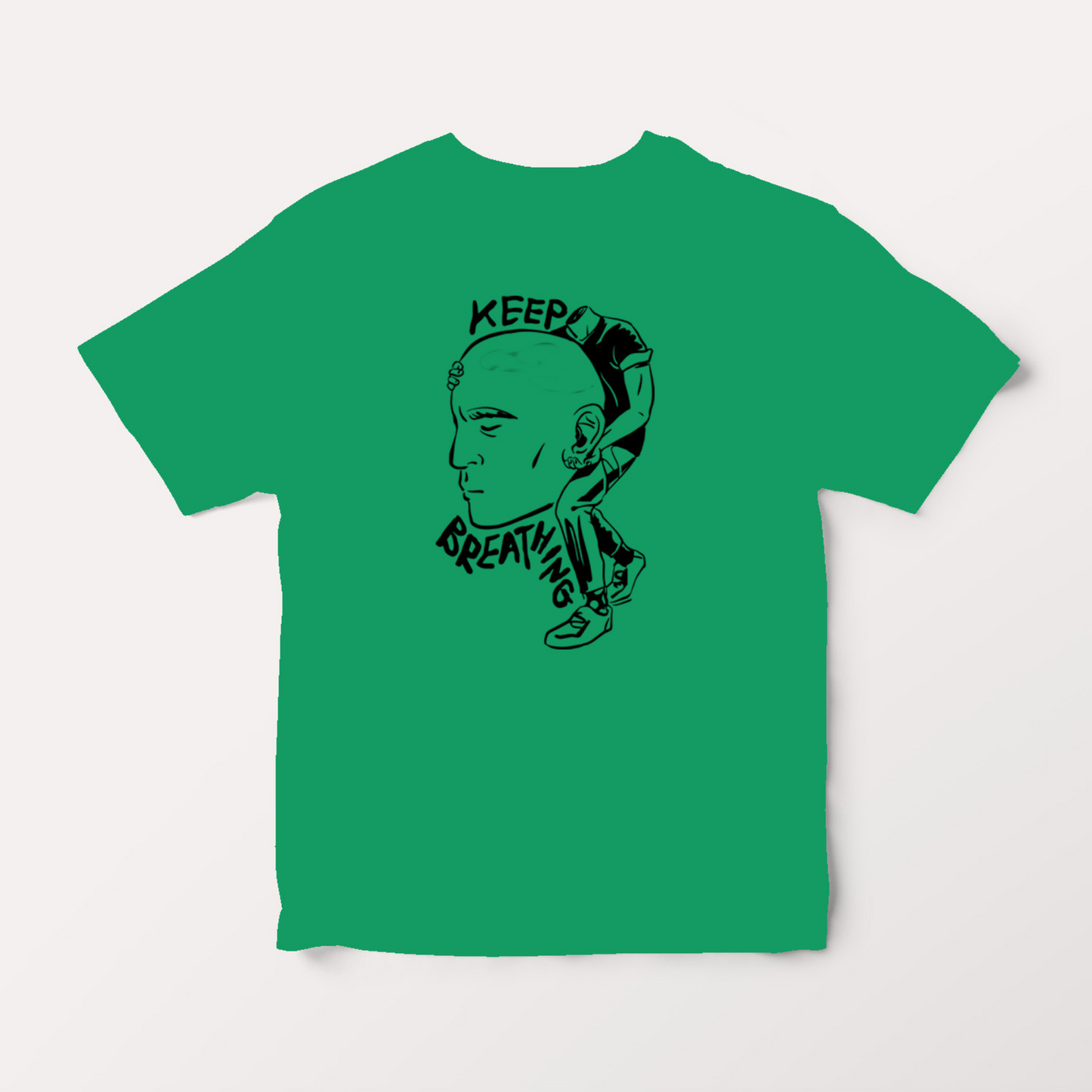 "Keep Breathing " by Yang Yang, emphasises the importance of sharing supportive messages about mental health. These messages aid in fostering understanding, reducing stigma, and providing assistance to those in need. The hand-screen-printed t-shirt is crafted from certified organic cotton, ensuring quality and sustainability.