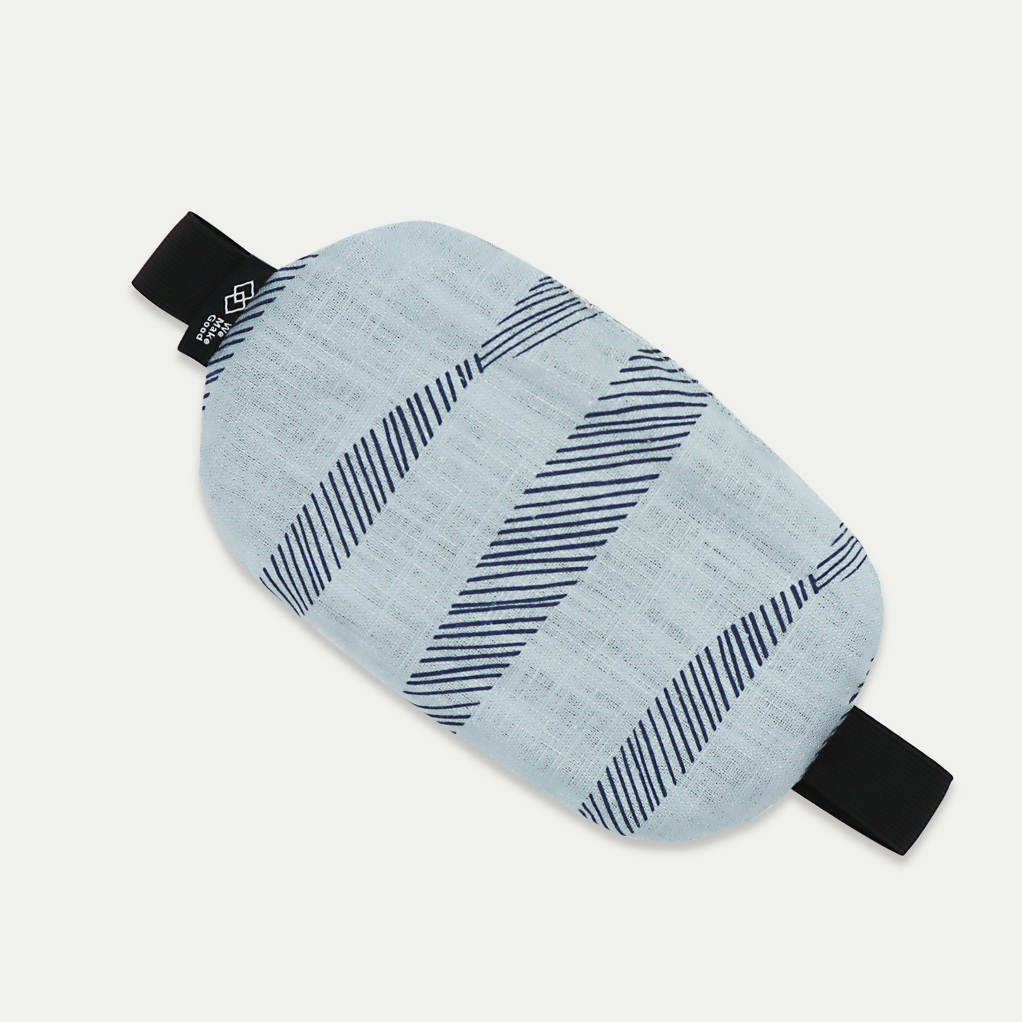 Soothe eyes & improve sleep with the Relaxing Lavender Eye pillow, perfect for relieving pains, stress, and tension in the eye area. Made with relaxing French lavender and linseed, it's crafted from organic fair trade cotton with dimensions of 20cm x 12cm. Soft black elastic keeps it in place.