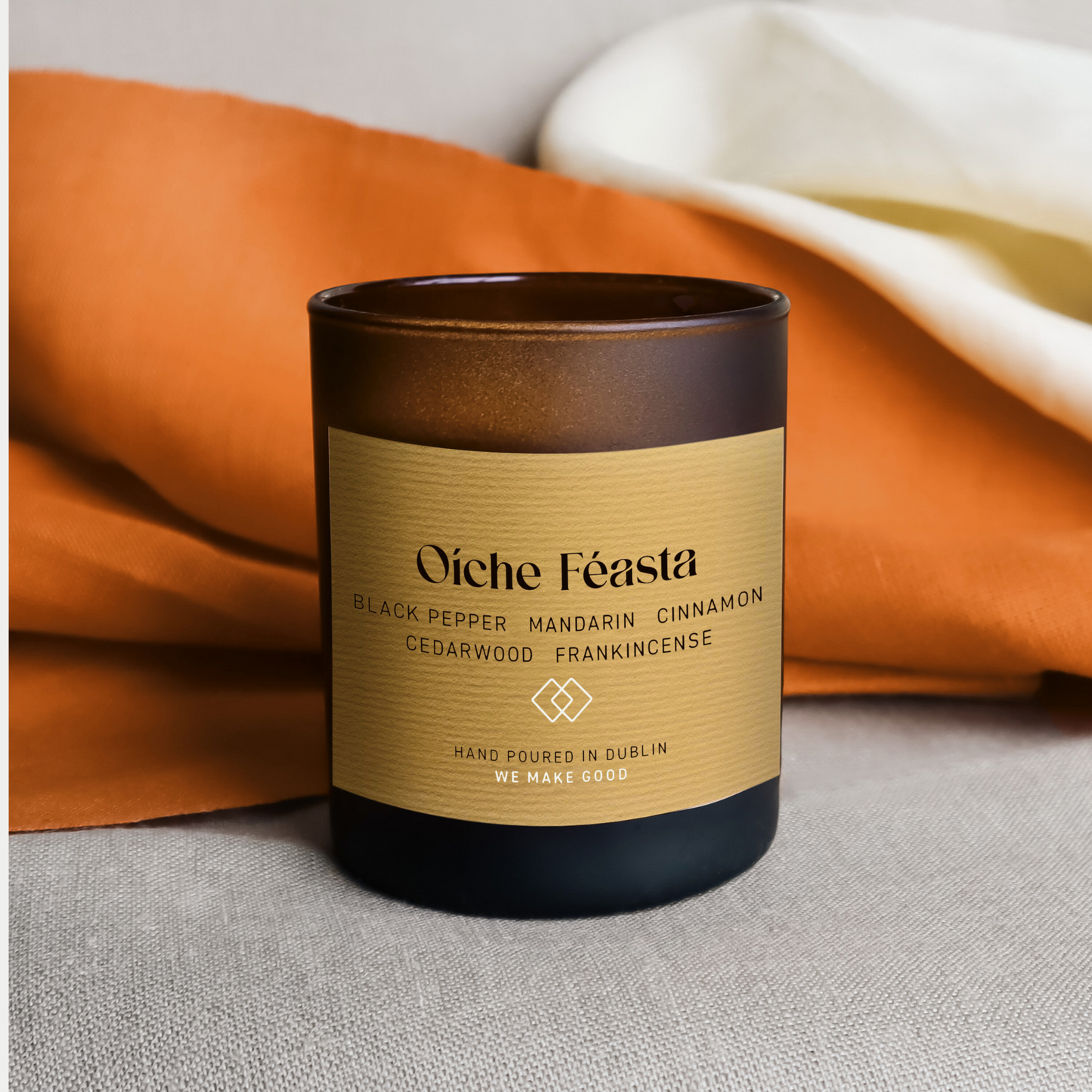 Experience the essence of the festive season with our Oíche Féasta Scented Candle. Infused with natural essential oils of frankincense, cinnamon, and sweet orange, it fills your home with the comforting aroma of Christmas gatherings and cozy fireside moments.