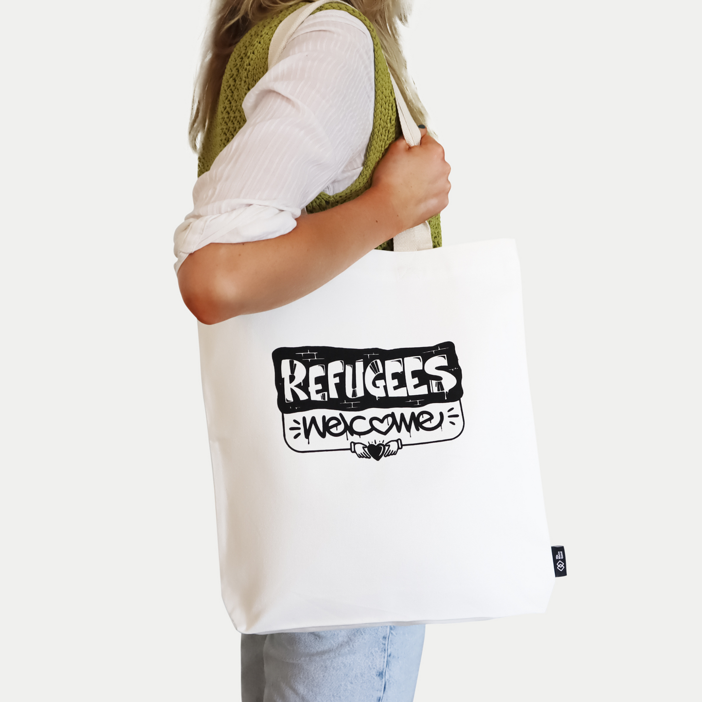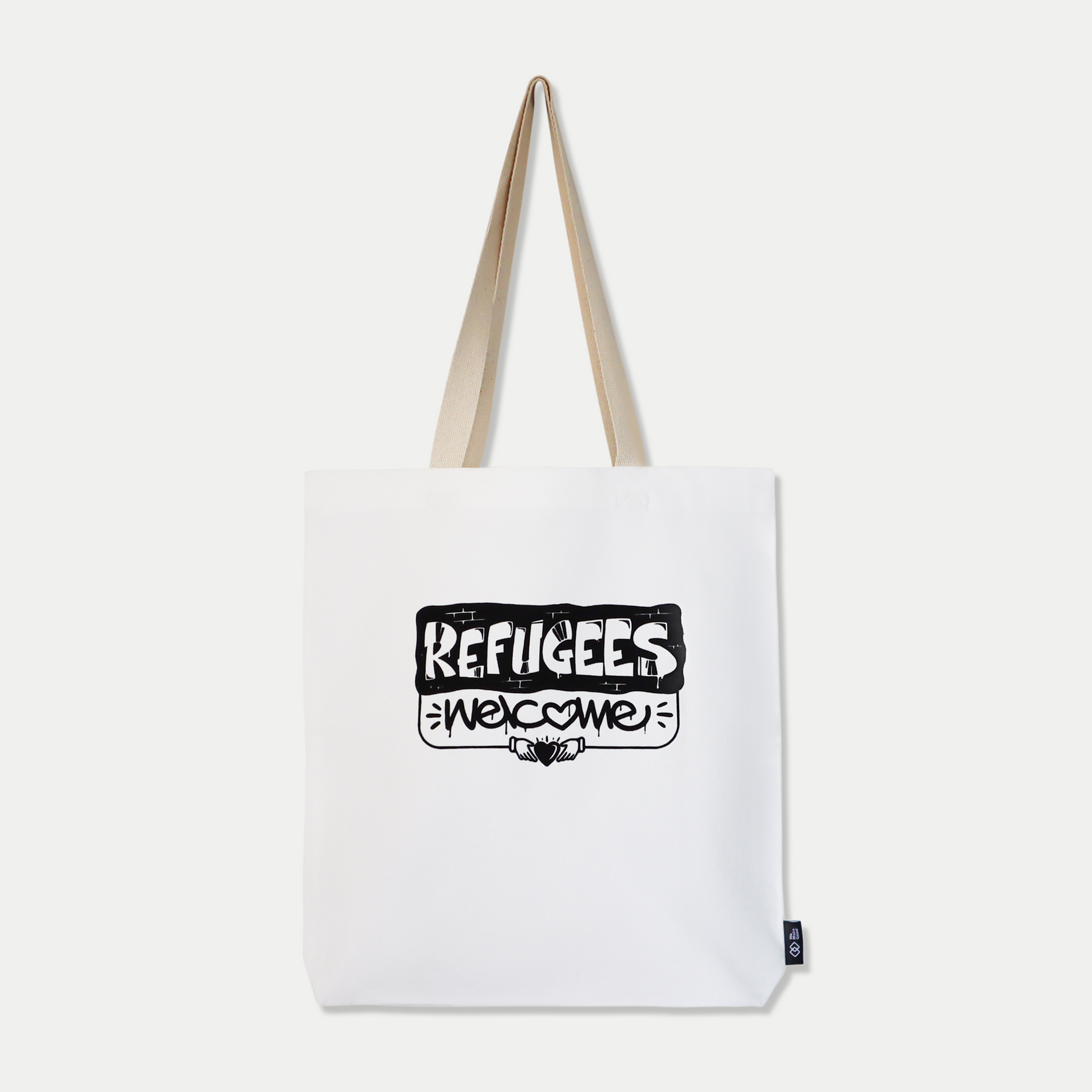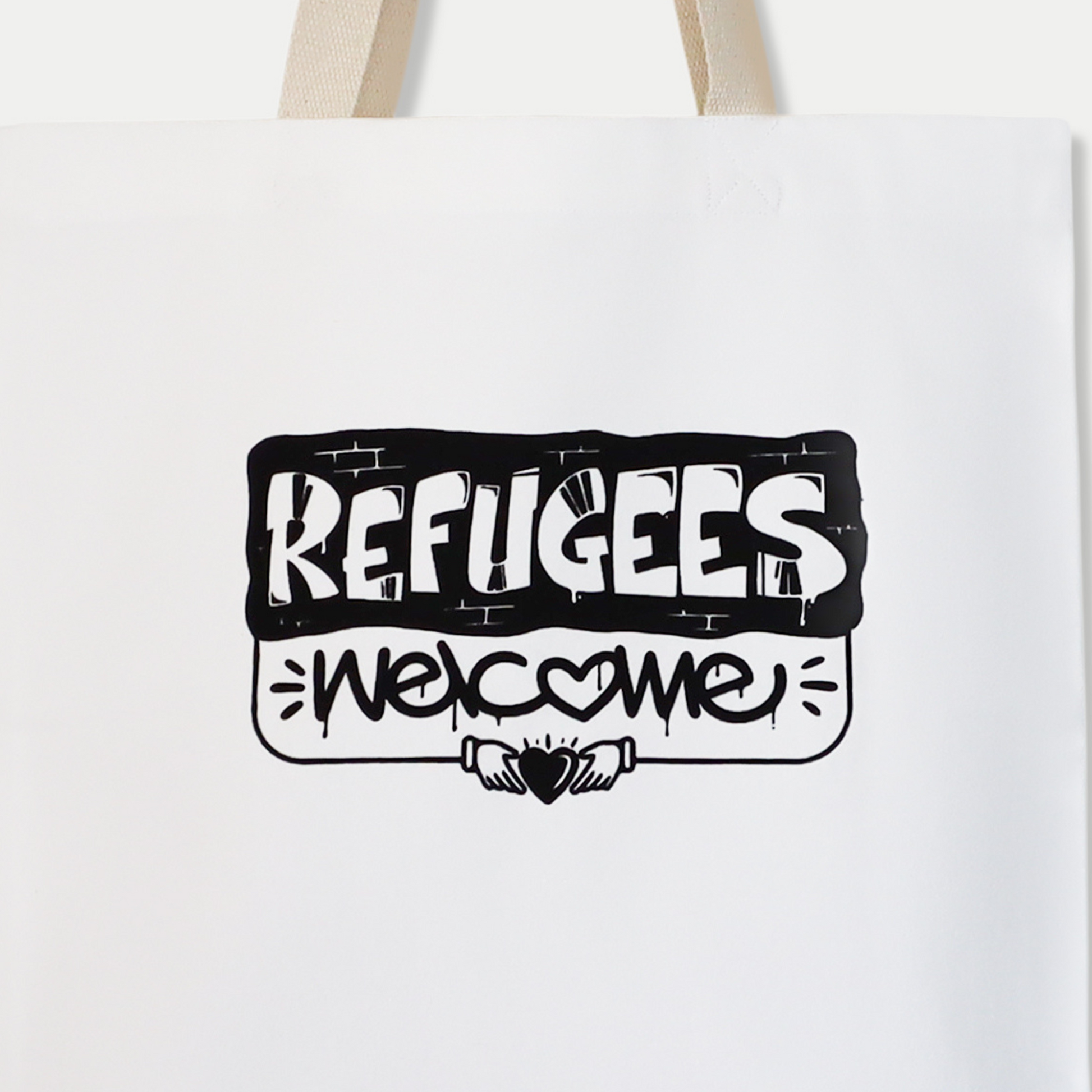 Our limited-edition tote bags, hand-printed in our Dublin textile studio, carry a simple message of ‘welcome’. A message that says: You are seen. You are safe here. You are part of our community.