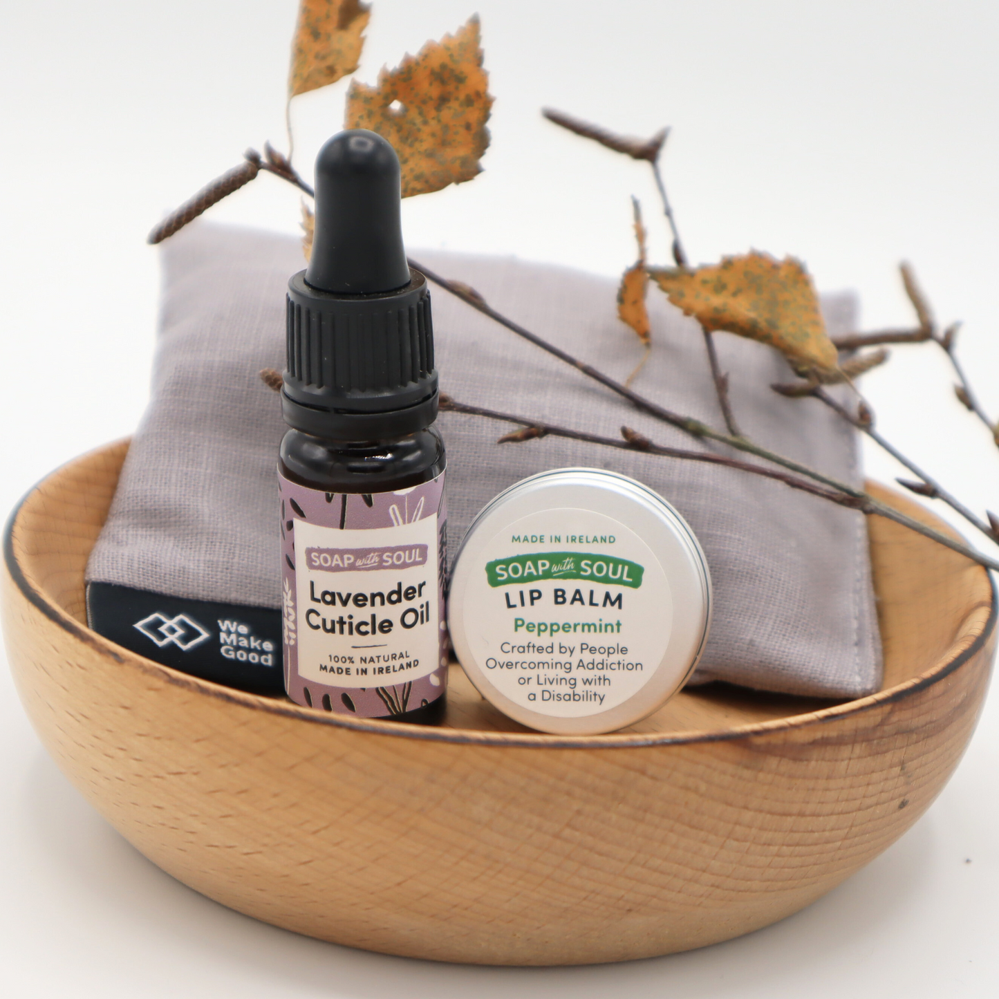 Handmade with care, the sleep oil and lip balm are crafted by adults with visual impairments at ChildVision. A handmade lavender pouch from the We Make Good team completes the experience—each piece supporting meaningful, inclusive employment. A thoughtful gift to ground, soothe, and reconnect.
